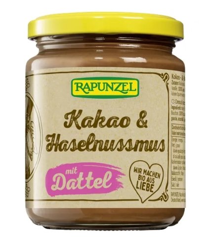 Saldi riešutinė pagunda – „Rapunzel“ ekologiškas kokosų ir lazdynų riešutų kremas su datulėmis ir kakava.