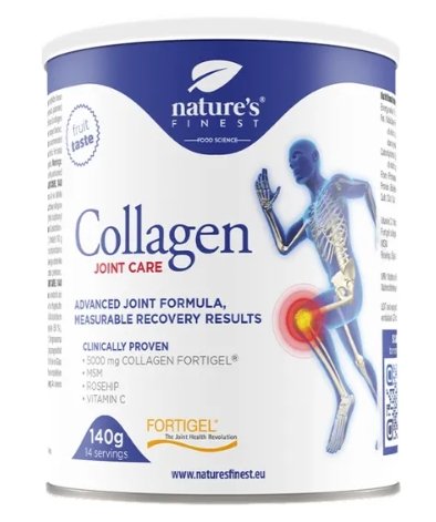 Maisto papildas „Nature’s Finest“ kolagenas JOINT CARE. Vaisių skonio. Su Fortigel® kolageno peptidais, kurių molekulės yra labai mažos ir lengvai pasisavinamos. Fortigel® gaminamas pagal specialią patentuotą formulę iš galvijų kaulų, tai yra II tipo kolagenas. Maisto papildo sudėtyje yra MSM, erškėtuogių ir vaistinės juodmirtės (angl. Camu camu).
