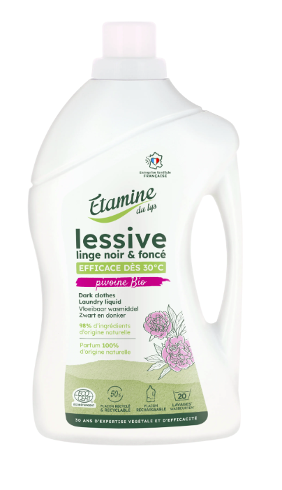 „Etamine du Lys“ skystas skalbiklis juodiems ir tamsiems audiniams padeda ilgiau išsaugoti spalvas. Apsaugo drabužius nuo vėlimosi. Su ekologišku bijūnų ekstraktu. Užtenka 20 skalbimų.